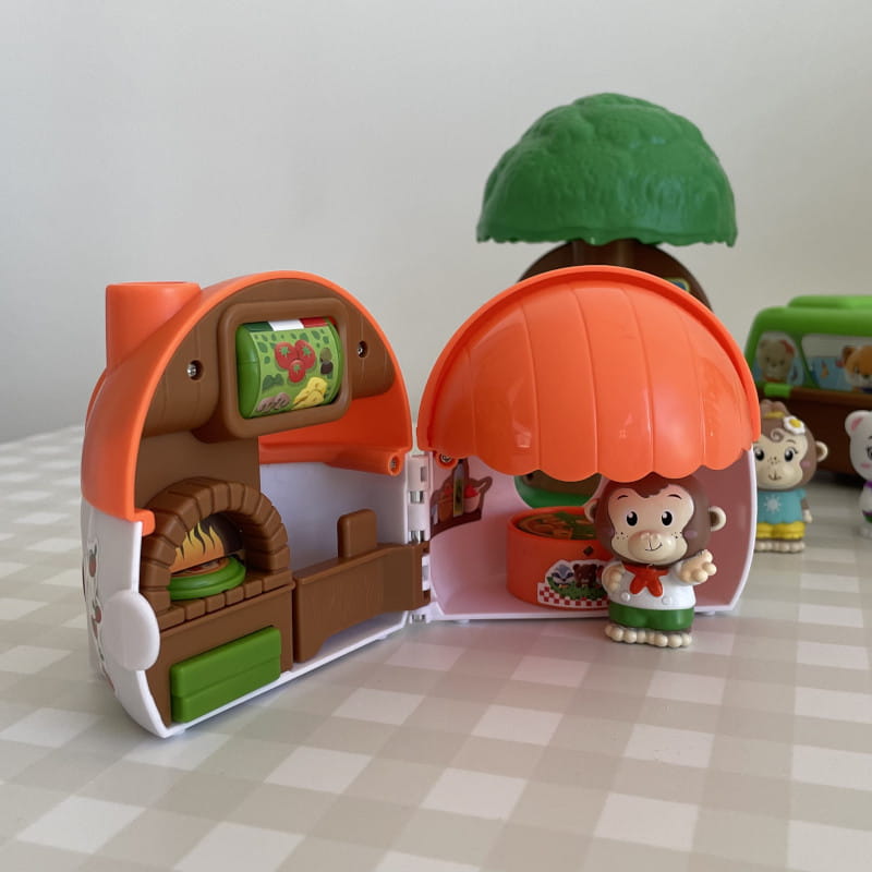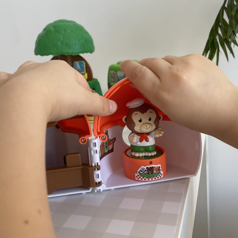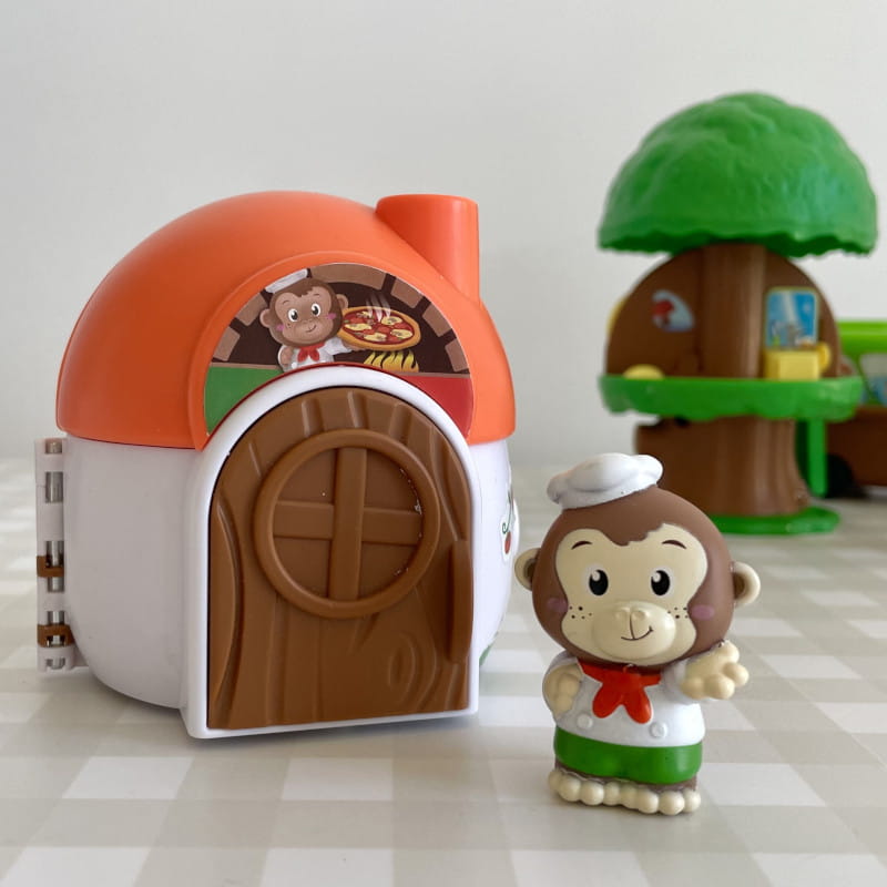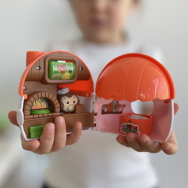- Zawiera mini pizzerię, zwierzątko kucharza małpkę.