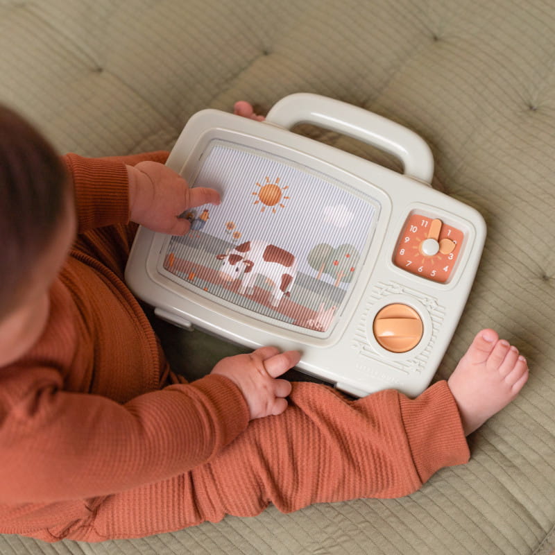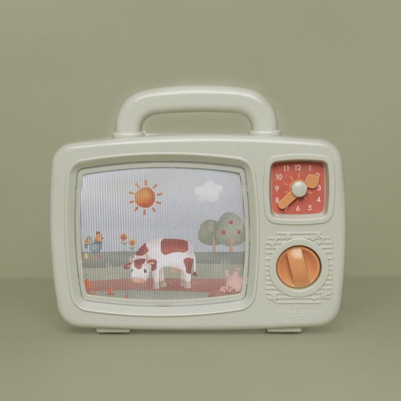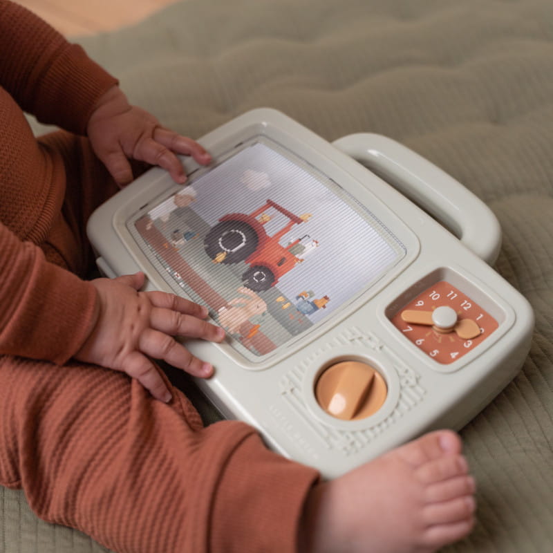 Odkryj wspaniały świat Little Farm razem z Musical TV. Dzięki wesołej melodii i ruchomym obrazom ten uroczy telewizor oczaruje Twojego malucha. Przekręć pokrętło i obserwuj, jak zmienia się obraz. Wspaniałe ilustracje przedstawiają życie na farmie.