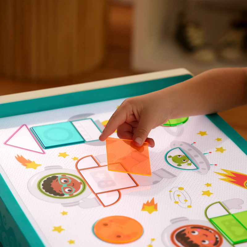 Look & Shine Light Box Playset świetnie wpisuje się w zasady pedagogiki Montessori, ponieważ: