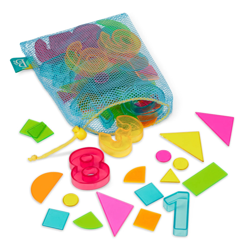 50 kolorowych, przezroczystych kształtów geometrycznych – do tworzenia kompozycji i obrazków, a także do eksperymentowanie z nakładaniem barw.