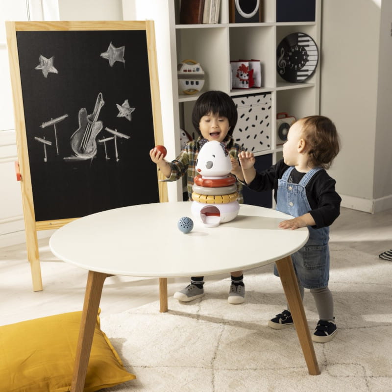 - Kreatywność. Dzięki różnym funkcjom, takim jak układanie pierścieni i wrzucanie piłek, dziecko ma swobodę eksperymentowania z zabawką, co pobudza wyobraźnię i kreatywność w tworzeniu różnych scenariuszy zabawy.