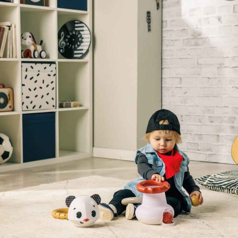 - Emocje. Zabawka dostarcza maluchowi radości i satysfakcji z interaktywnej zabawy, gdy piłki wpadają do głowy pandy, a efekty świetlne i dźwiękowe „magicznie” się uruchamiają, co wzmacnia pozytywne emocje.