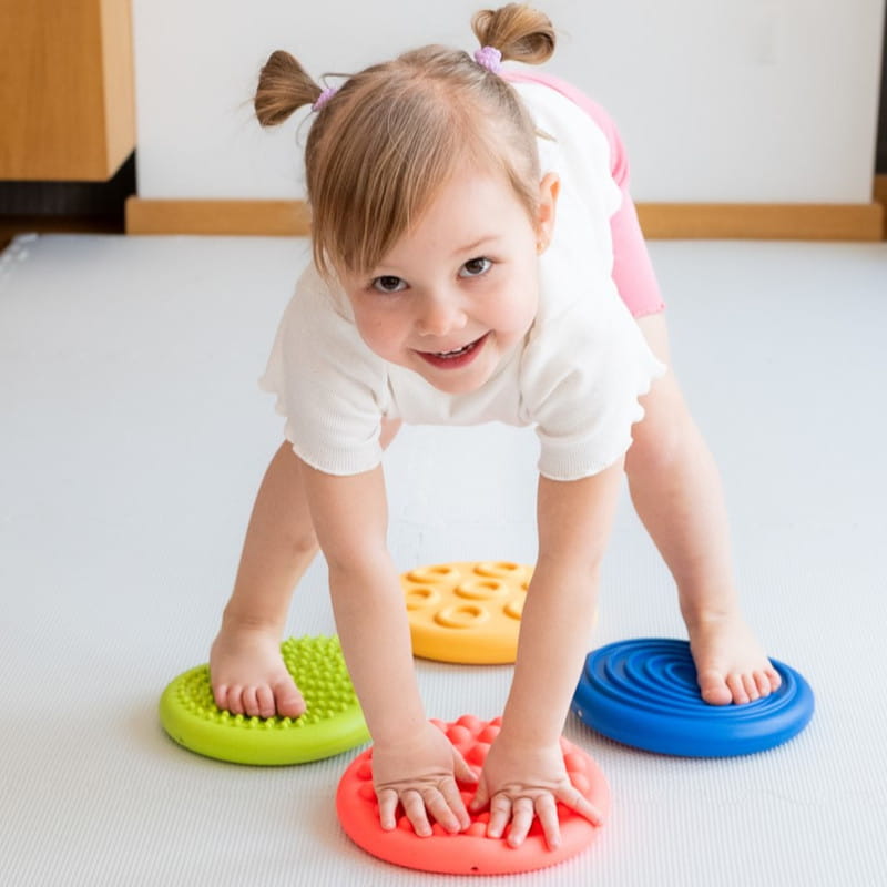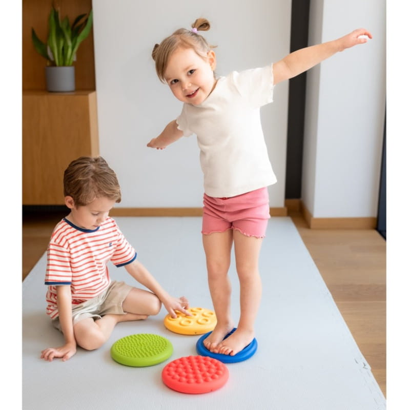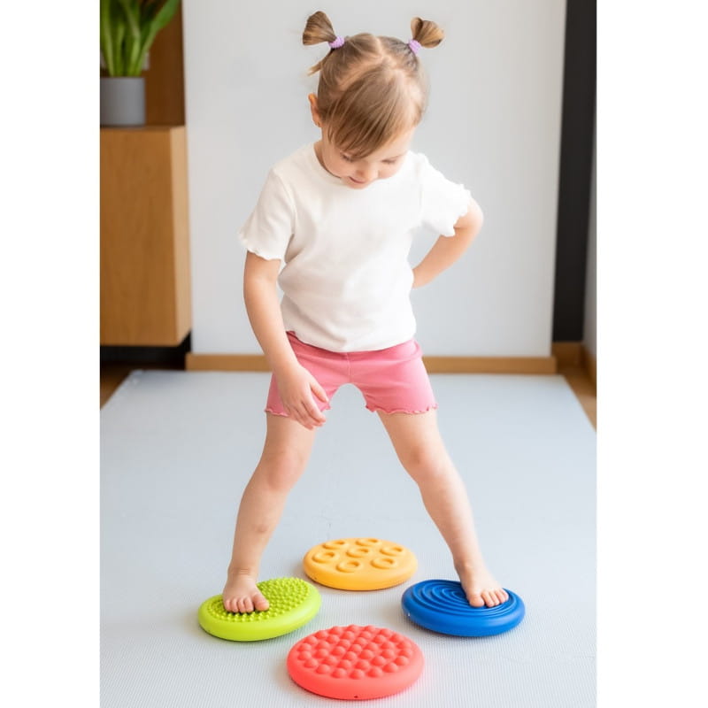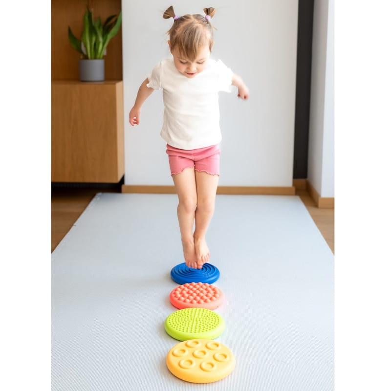Dyski są chętnie wykorzystywane w przedszkolach oraz gabinetach terapeutycznych. Po ułożeniu na podłodze tworzą atrakcyjną ścieżkę sensoryczną, która dostarcza różnorodnych bodźców i stanowi urozmaicenie zajęć grupowych.