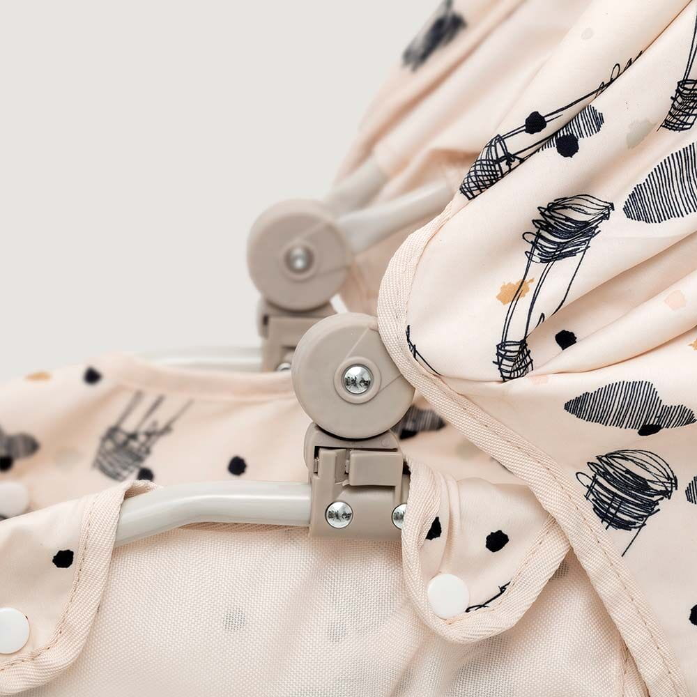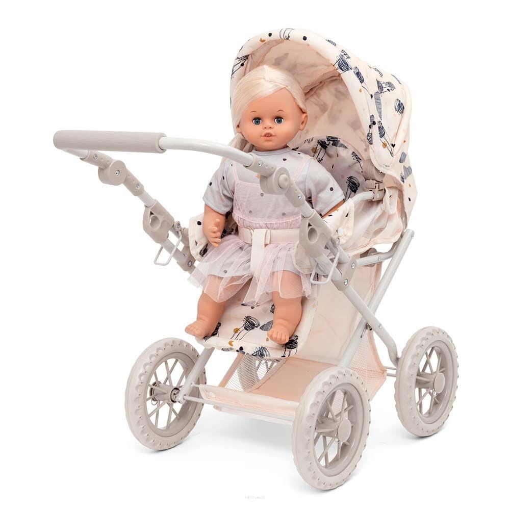 Siedzisko w wózku może być dostosowane, dzięki czemu lalka może leżeć i spać albo usiąść i obserwować, co się dzieje.