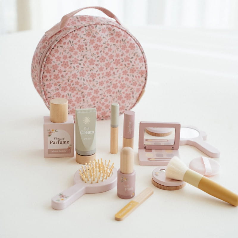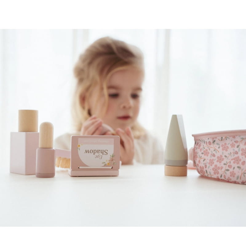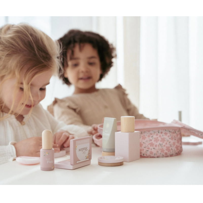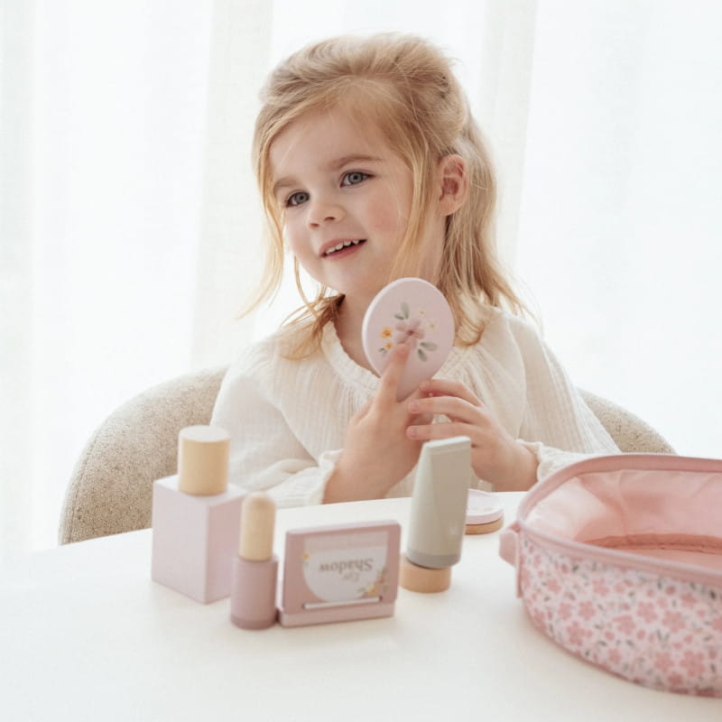Piękna materiałowa kosmetyczka z drewnianymi kosmetykami i akcesoriami Beauty od Little Dutch.