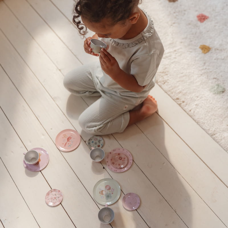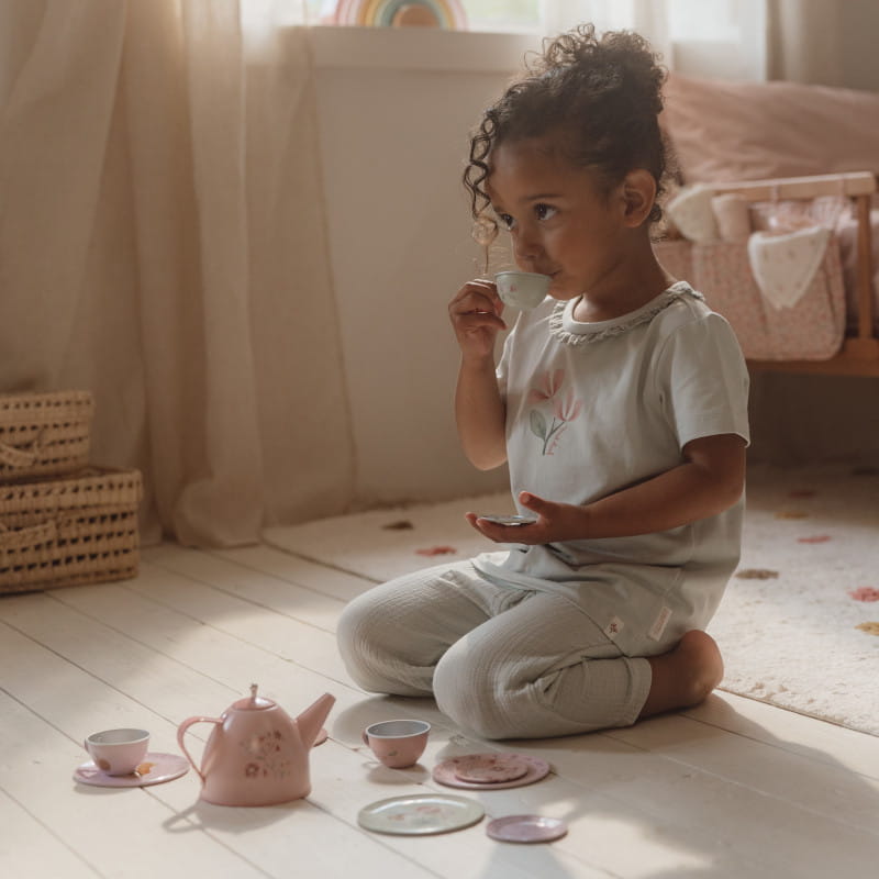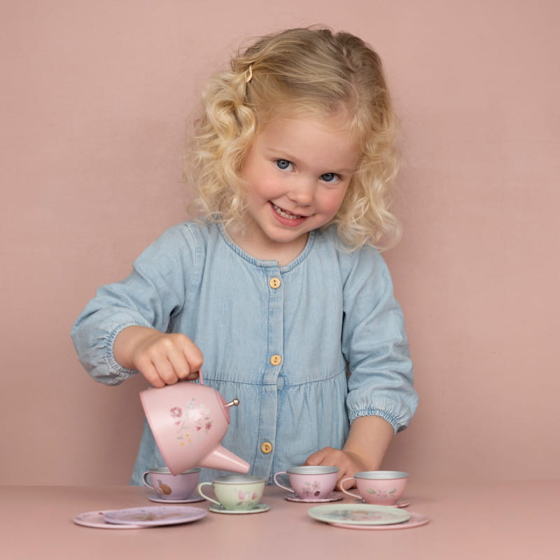 Ten uroczy zestaw do herbaty świetnie się nada do zorganizowania przyjęcia i zabawy w odgrywanie ról.