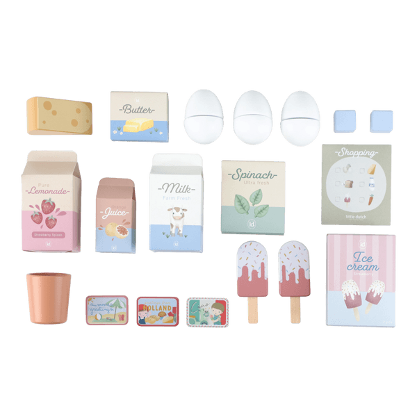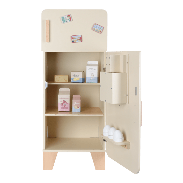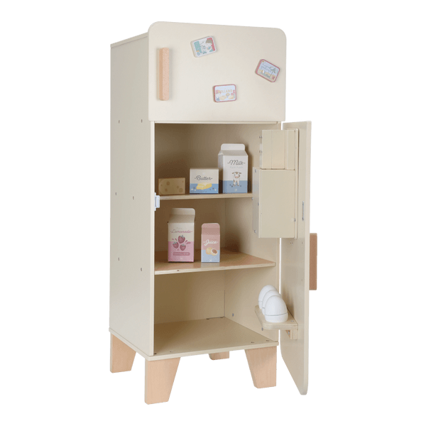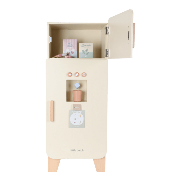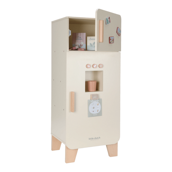 Zachowaj świeżość zabawy! Ta drewniana lodówka Little Dutch to piękny i funkcjonalny element każdego dziecięcego kącika kuchennego. Wyposażona w praktyczną zamrażarkę z kostkarką do lodu oraz mnóstwo miejsca na przechowywanie artykułów spożywczych, w tym specjalną przegródkę na jajka, zachęca do twórczej zabawy i odkrywania zasad zdrowego żywienia.