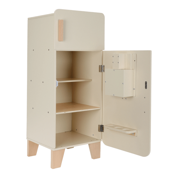 Lodówka to połączenie estetyki i zabawy w najlepszym wydaniu. Zestaw nie tylko dostarcza dzieciom wielu godzin radości, ale również pięknie prezentuje się w pokoju dziecięcym. Zabawka wykonana jest z solidnego drewna, malowanego bezpiecznymi farbami na bazie wody, dzięki czemu jest trwała, estetyczna i w pełni bezpieczna dla dzieci. To piękny, ponadczasowy element zabawy, który posłuży przez długie lata. Lodówka doskonale komponuje się z kuchnią oraz pralką Little Dutch, tworząc pełen uroku, kompletny kącik kuchenny. tyka i wyjątkowe wzornictwo, które idealnie wpisuje się w nowoczesną estetykę dziecięcych wnętrz.