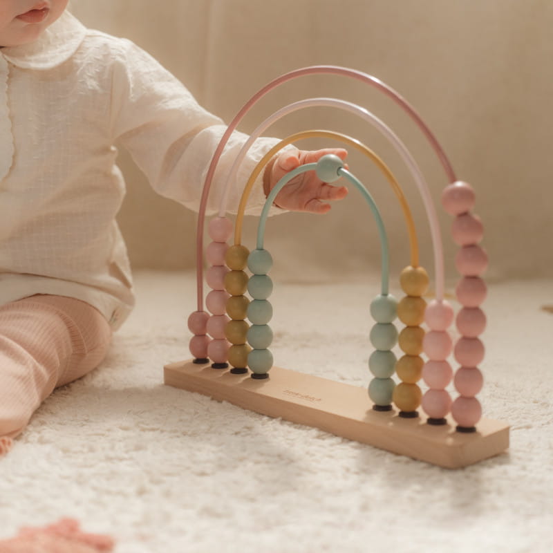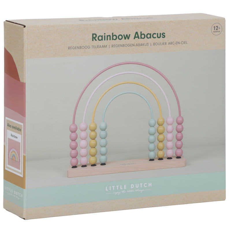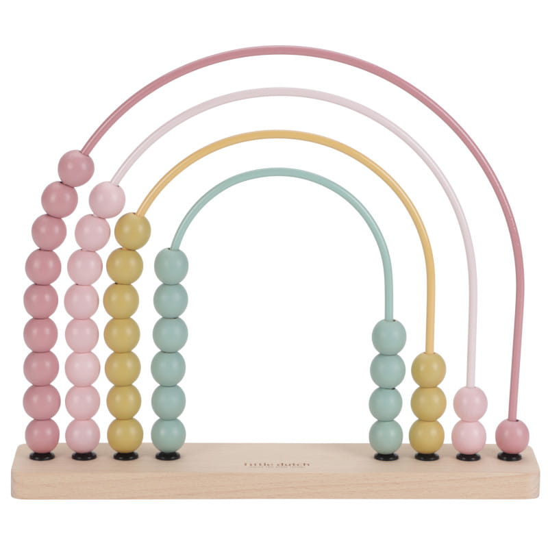 To urocze liczydło w kształcie tęczy zostało zaprojektowane tak, aby liczenie było zabawą. Posiada cztery kolorowe osie, każda ma po 10 kuleczek do łatwego i samodzielnego liczenia. Dzieci uwielbiają przesuwać koraliki z jednej strony na drugą. Podczas zabawy doskonalą swoje umiejętności motoryczne i poznają kolory. Starsze dzieci mogą wykonywać ćwiczenia matematyczne na liczydle.