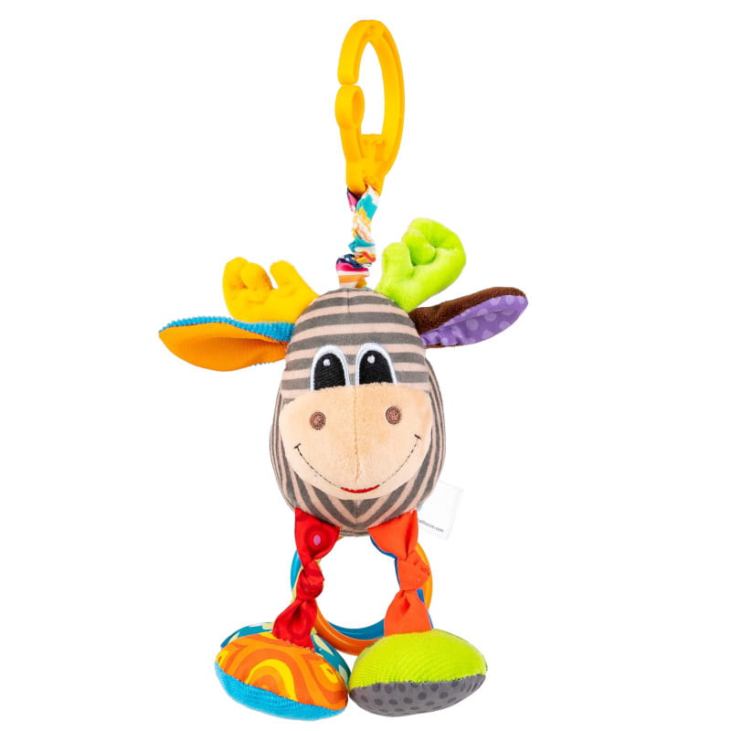 Alek to łoś do zadań specjalnych. Zabawia malucha, wesoło „majtając” nogami, dostarcza bodźców dotykowych, rozwijając tym samym zdolności poznawcze dziecka, a nawet wibruje!