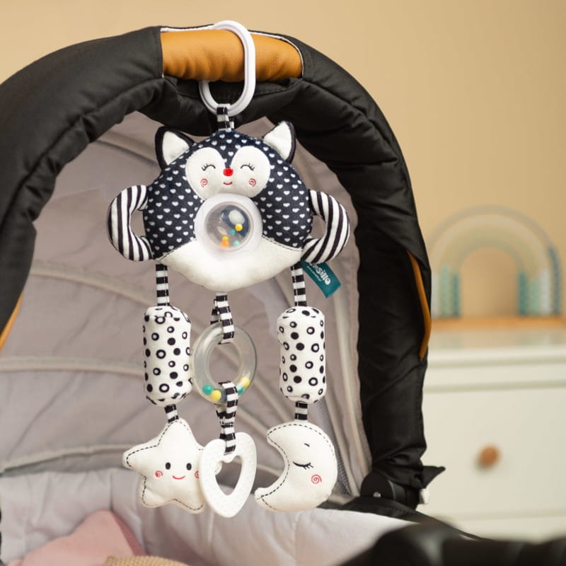 Dzięki wygodnemu, uniwersalnemu uchwytowi łatwo zamocujesz ją na wózku, foteliku samochodowym lub łóżeczku, co sprawia, że zabawka jest zawsze pod ręką.