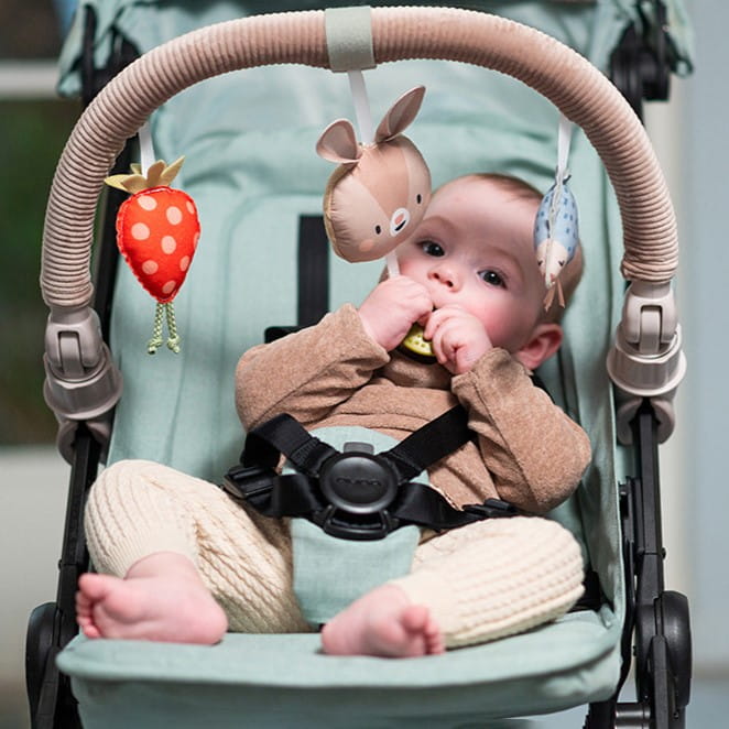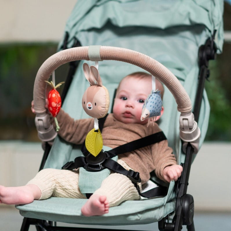 - Regulowany design: Wysoce elastyczny design pozwala rodzicom dostosować zabawkę do indywidualnych potrzeb dziecka. Możliwość regulacji wysokości pozwala na komfortowe ustawienie pałąka w wózku, spacerówce lub nosidełku.