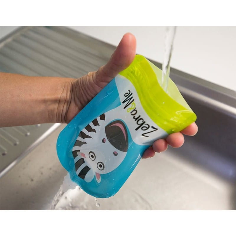Kolorowe wielorazowe saszetki na pokarm DIVER Zebra & Me zamykane na podwójny zamek strunowy. Saszetki są łatwe w napełnianiu, myciu i przechowaniu. Nieodzowne w domu, na spacerach i w podróży.