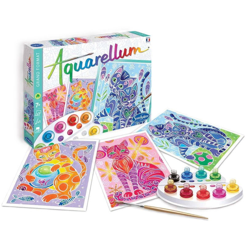 Zestaw kreatywny do malowania akwarelami Aquarellum z motywem koloroych kotów od francuskiej marki Sentosphere.
