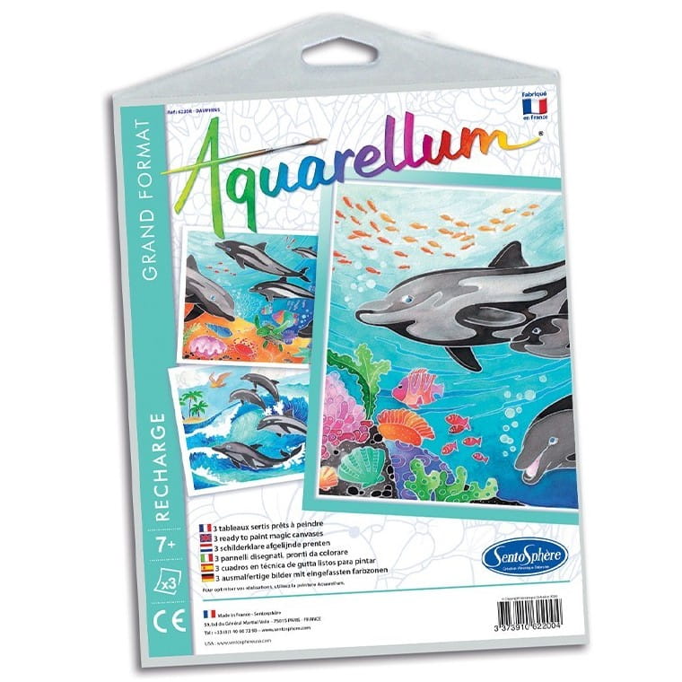 Zestaw zapasowych plansz A4 do malowania Aquarellum Delfiny francuskiej marki Sentosphere.