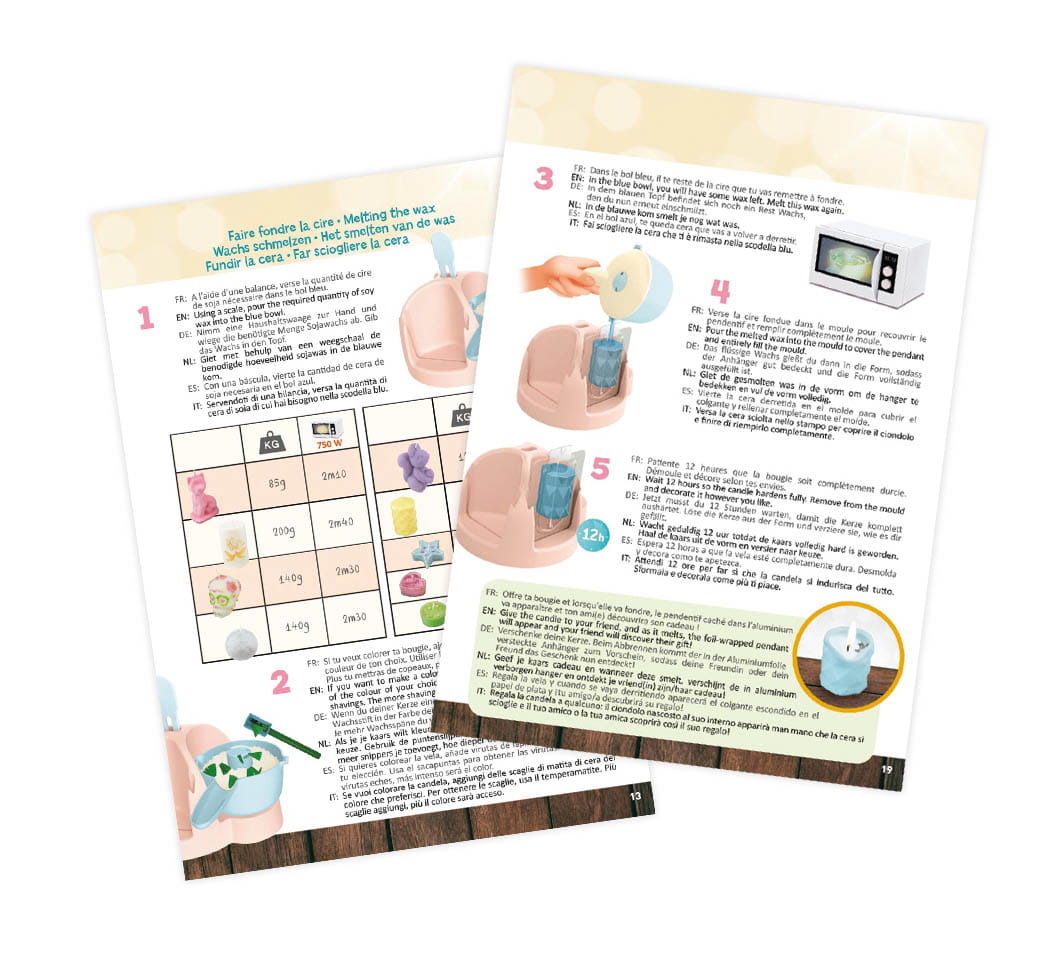 Specjalny pojemnik z pokrywą pozwoli Ci bezpiecznie stopić wosk w kuchence mikrofalowej. Dodaj kawałki woskowych kredek aby zrobić kolorową świecę. Następnie użyj cyrkonii, brokatu lub innych ozdób. Zawiń zawieszkę i ukryj ją w świecy jako wyjątkowy prezent!
