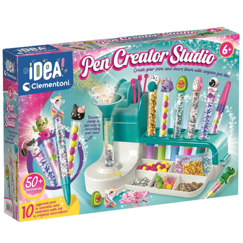 Nowy zestaw Idea, który pozwala dzieciom tworzyć i personalizować długopisy za pomocą wielu akcesoriów i dekoracji. Podręczny blat do ćwiczeń i bogaty zestaw instrumentów wspomagających zabawę daje niesamowity efekt!