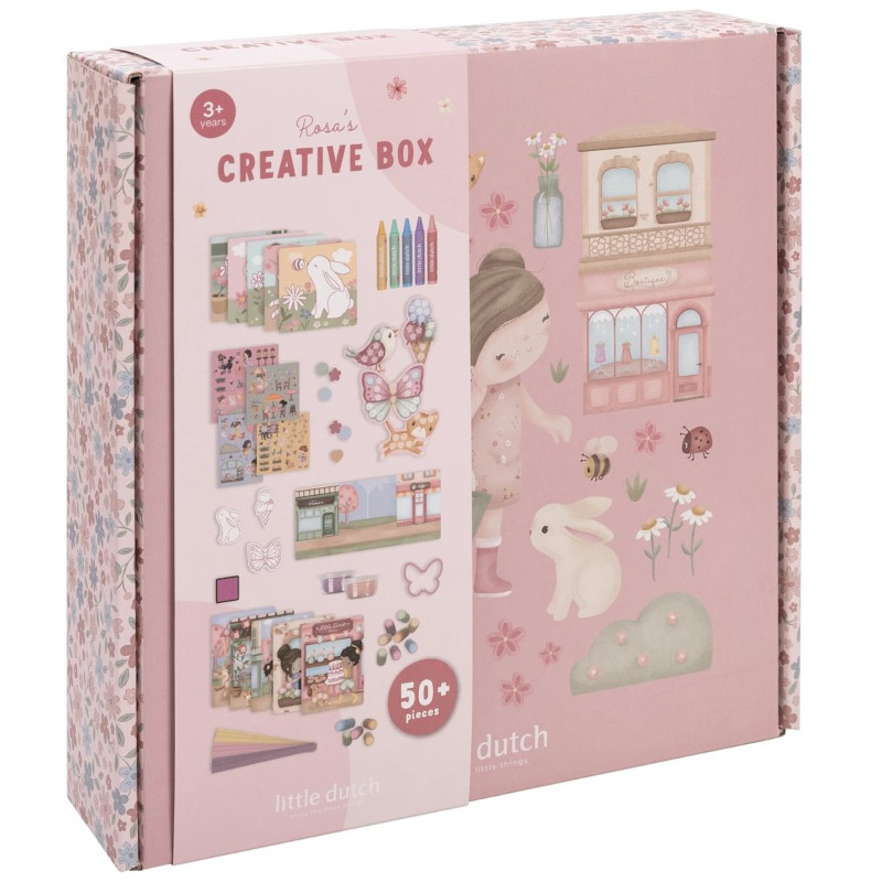 Rozbudź artystyczną duszę swojego dziecka z kreatywnym pudełkiem XL Rosa & Friends od Little Dutch! Ten bogaty zestaw to prawdziwa skarbnica inspiracji - pełen materiałów, które zachęcają do tworzenia, eksperymentowania i odkrywania świata sztuki.