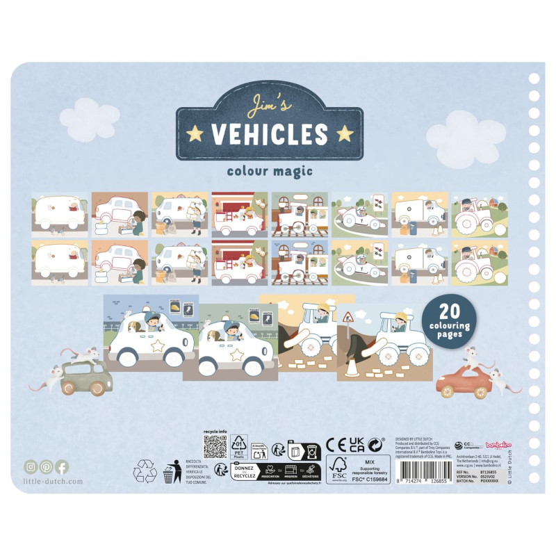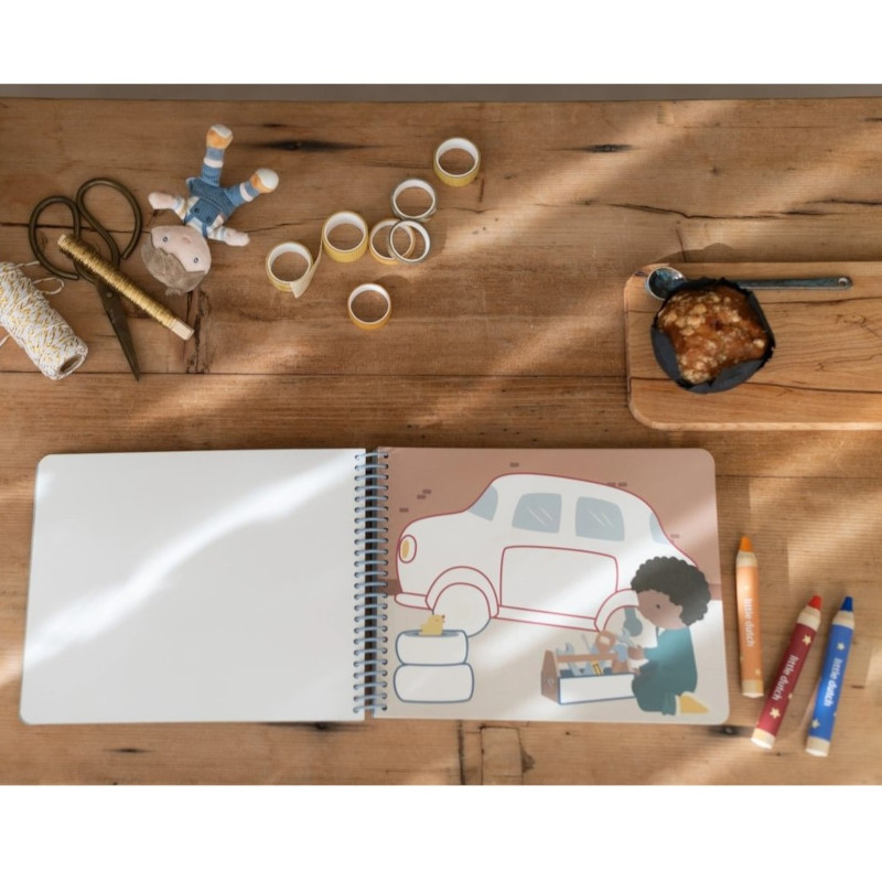 Kolorowanka z uroczymi obrazkami samochodów marki Little Dutch.