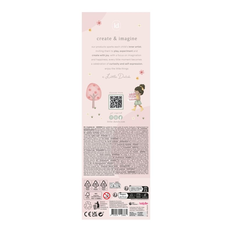 Walizka została zaprojektowana tak, by była wygodna do przenoszenia i idealna zarówno w domu, jak i w podróży. Pastelowa, charakterystyczna dla Little Dutch estetyka sprawia, że zestaw jest nie tylko praktyczny, ale też wyjątkowo uroczy.