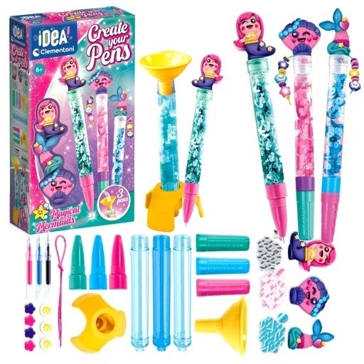 Praktyczny, wieloelementowy zestaw składający się z: długopisów, tuszy w różnych kolorach, figurek i wszystkich narzędzi potrzebnych do ich wykonania.