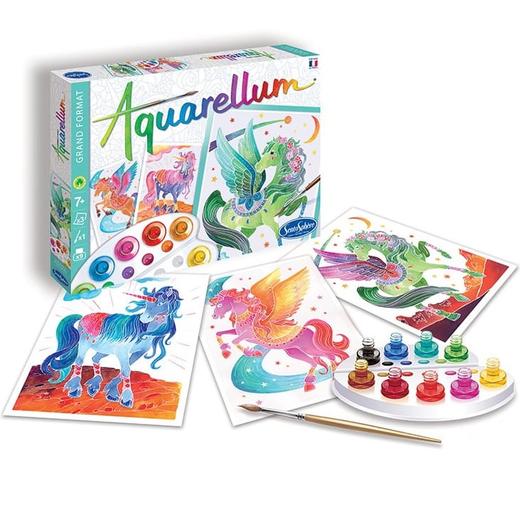 Zestaw kreatywny do malowania akwarelami Aquarellum Jednorożce i Pegazy francuskiej marki Sentosphere.