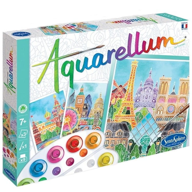 Zestaw kreatywny do malowania akwarelami Aquarellum Barwne Stolice francuskiej marki Sentosphere.