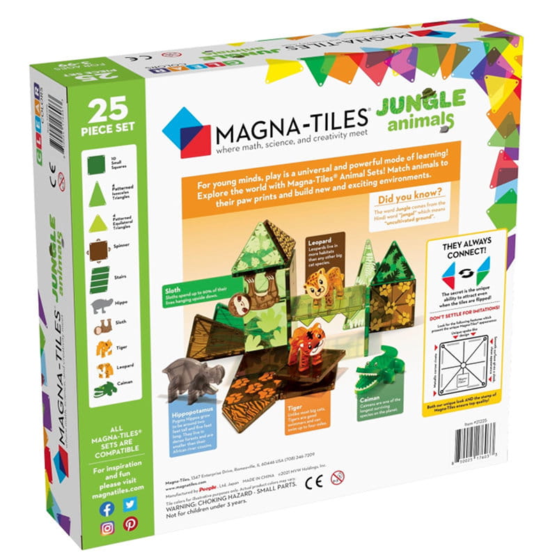 Klocki magnetyczne Jungle Animals 25 elementów marki Magna-Tiles.