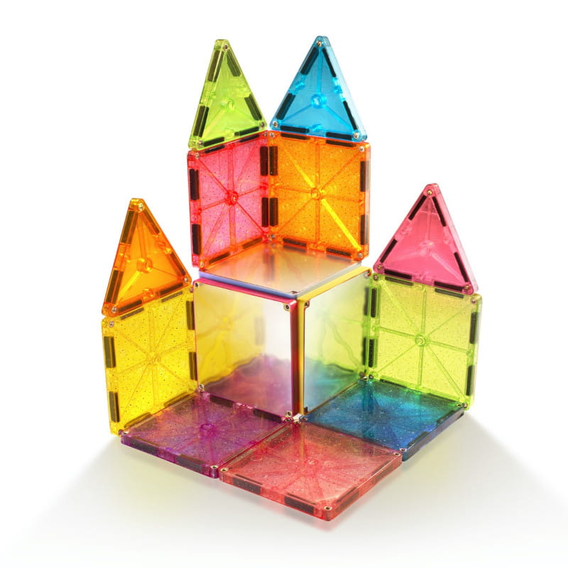 15-elementowy zestaw klocków magnetycznych Stardust, zawierający klocki z brokatem i lustrami. Sprawi, że Twoje dzieła będą lśniły!