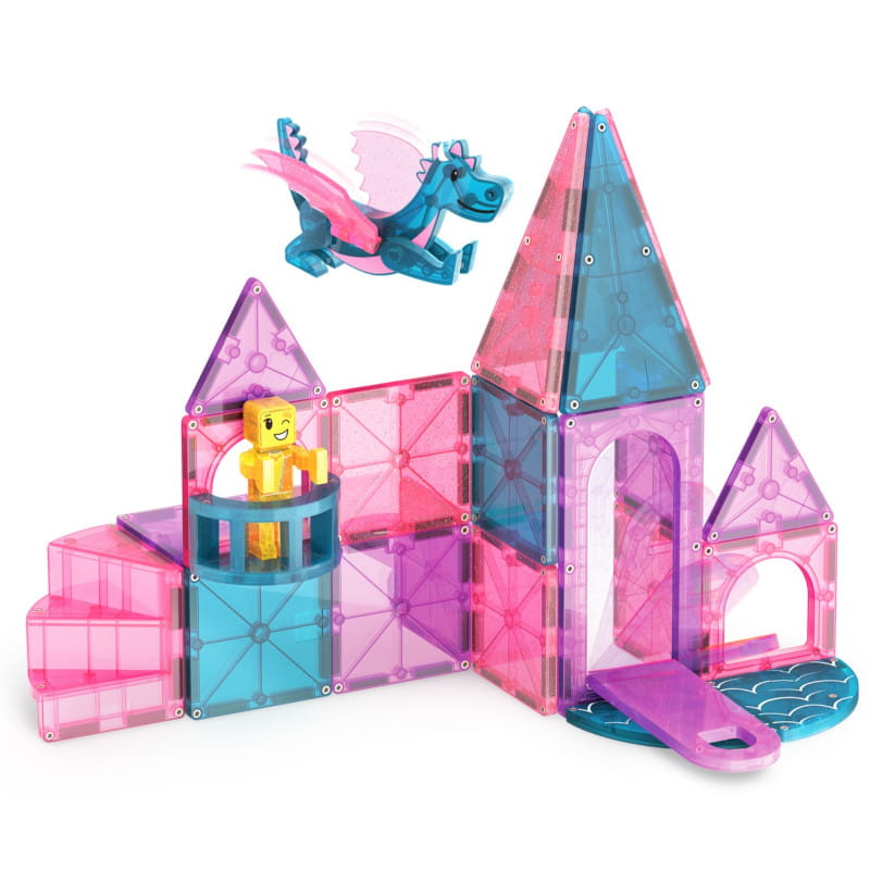 Spełnij swoje bajkowe marzenia z zestawem MAGNA-TILES® Zamek! Otwórz most zwodzony i wkrocz do świata magnetycznych cudów lub wznieś się w przestworza z wyjątkową figurką smoka. Zestaw zawiera również balkon i spiralne schody, a także odrobinę brokatowych klocków. Obserwuj, jak dzieci tworzą własne bajkowe przygody dzięki nieograniczonemu potencjałowi opowieści i zabawie w budowanie.