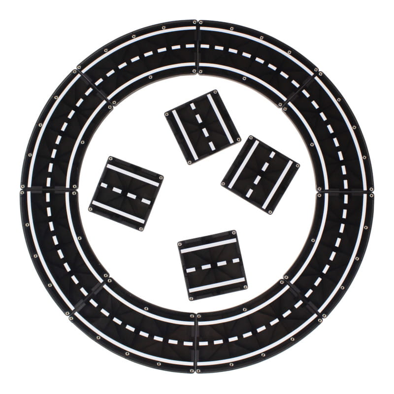 Rozbudów swój zestaw! Więcej dróg oznacza więcej przygód, więcej pomysłów i więcej zabawy! Zestaw zawiera 12 magnetycznych elementów czarnej drogi, w tym 8 zakrzywionych (45 stopni) i 4 kwadratowe, dzięki czemu można budować tory i organizować wyścigi!