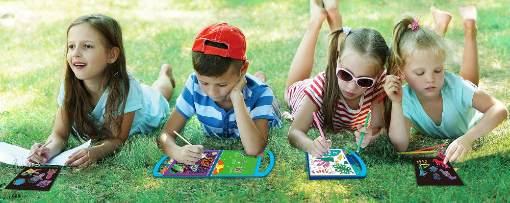 Wydrapywanka to wyjątkowy arkusz, na którym poprzez zdrapywanie wierzchniej czarnej warstwy ukazują się kolorowe obrazki. To ciekawa propozycja dla kreatywnych dzieci i ćwiczenie zdolności motorycznych. Prosta technika wydrapywania pozwala na stworzenie przepięknych, oryginalnych obrazków. Dzięki użyciu odpowiedniego rysika i obserwowania papieru podczas zabawy dziecko odbiera nowe wrażenia dotykowe.