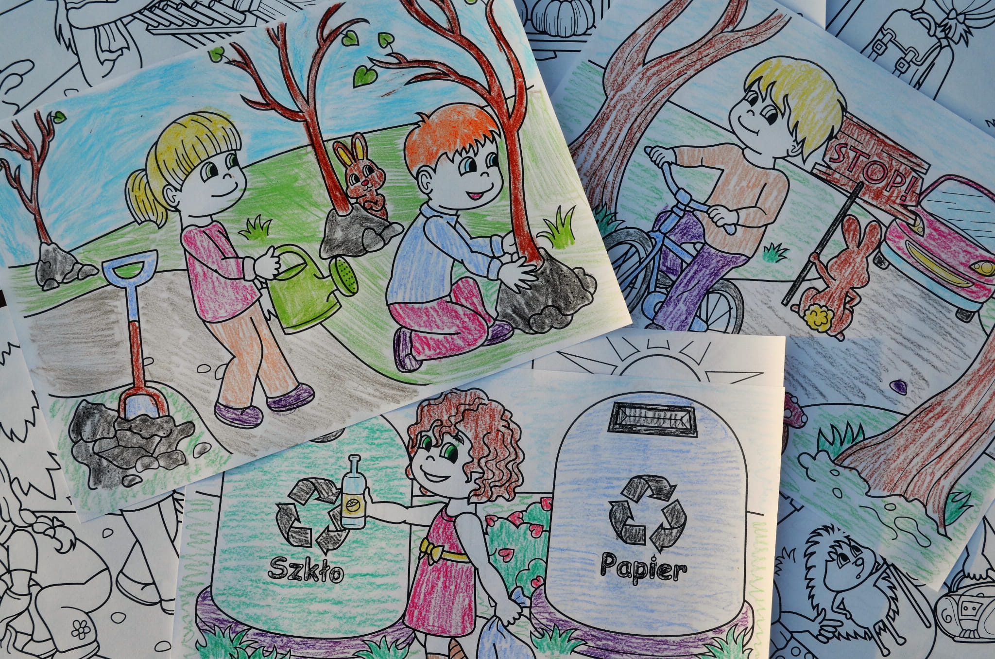 Kolorowanka ma charakter edukacyjny, przedstawia dzieci w sytuacjach, w których dbają o środowisko naturalne. Znajdują się tutaj obrazki związane z tematyką m.in. segregacji śmieci, oszczędzania energii i wody, odnawialnych źródeł energii i wielu innych działań podejmowanych na rzecz ochrony środowiska.