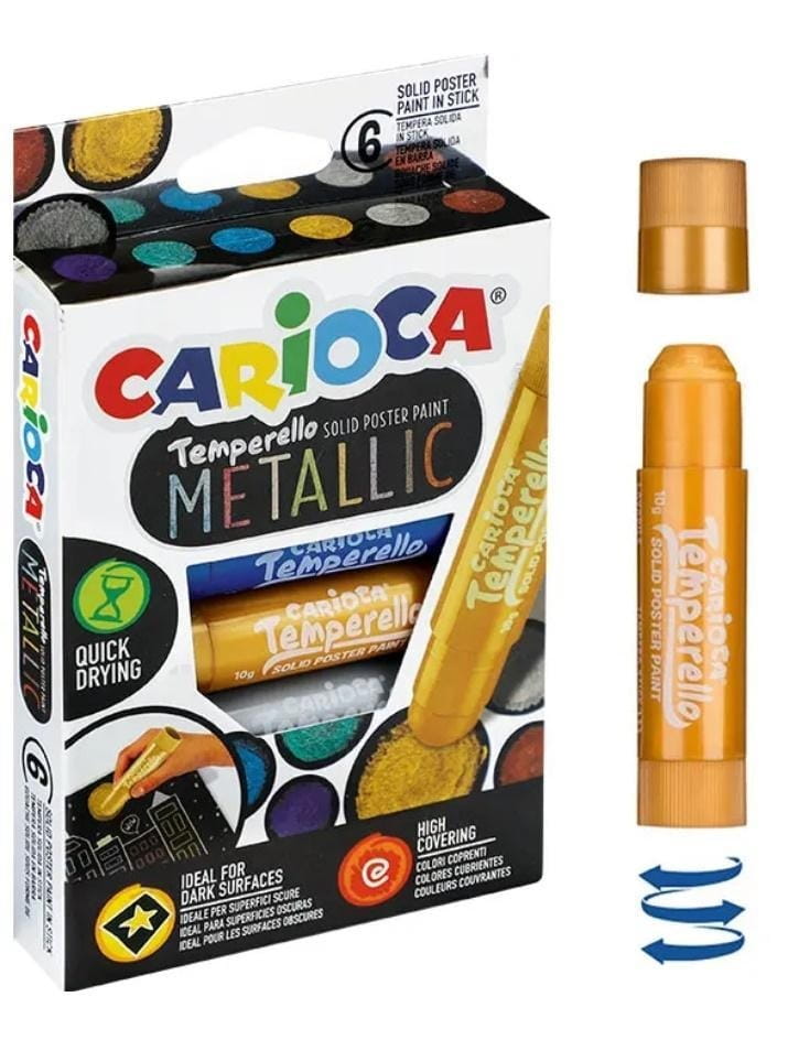 Zestaw metalicznych plakatowych farb w sztyfcie włoskiej marki Carioca.