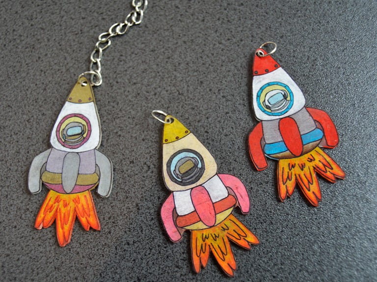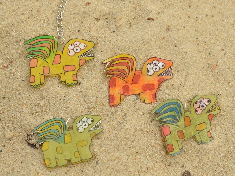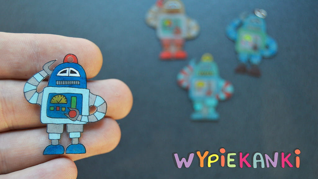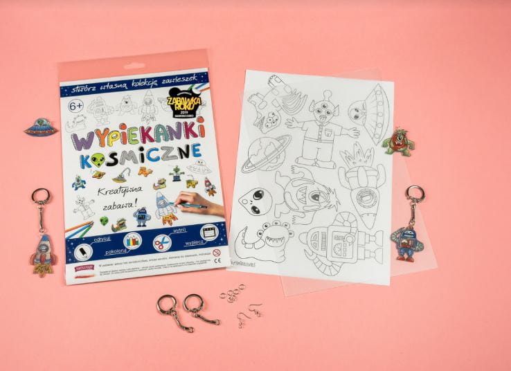 Odrysuj na specjalnej folii szablony dołączone do zestawów, pokoloruj, wytnij je, a na koniec wypiecz przez kilka minut w domowym piekarniku w temp. 160 o C. W tym czasie folia skurczy się i usztywni.