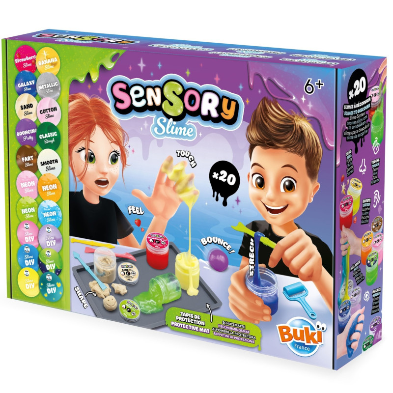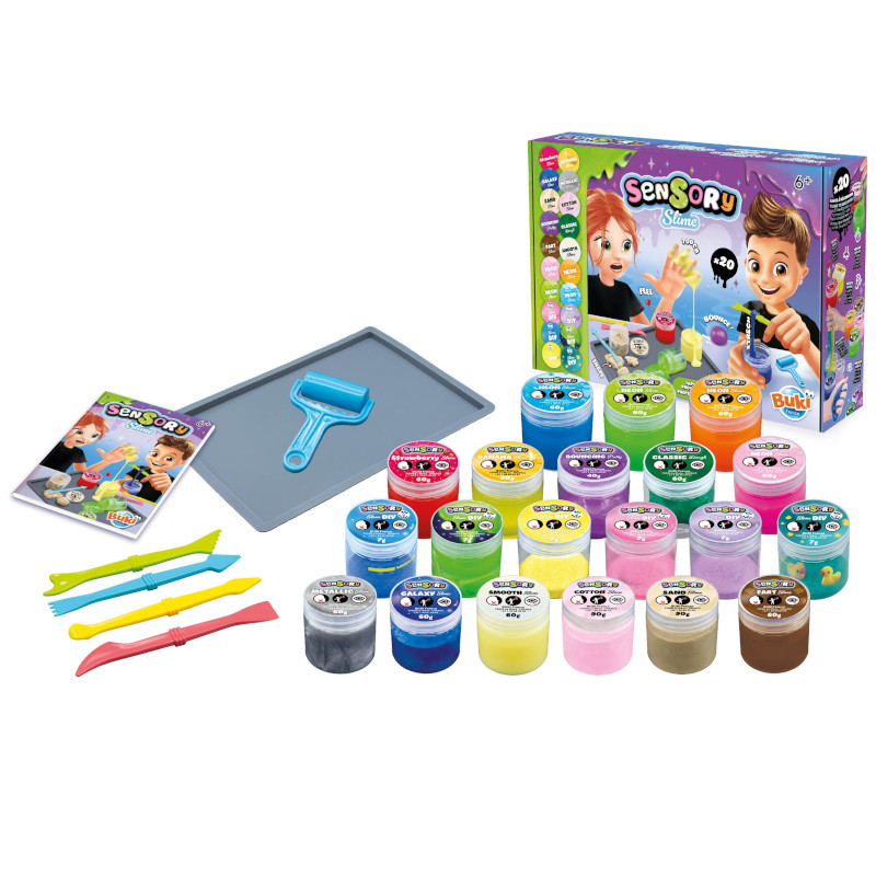 Oto prawdziwa sensoryczna podróż dla zmysłów! Zestaw od BUKI pozwala na stworzenie 20 rodzajów slime'ów: skaczący, świecący, neonowy, kosmiczny...